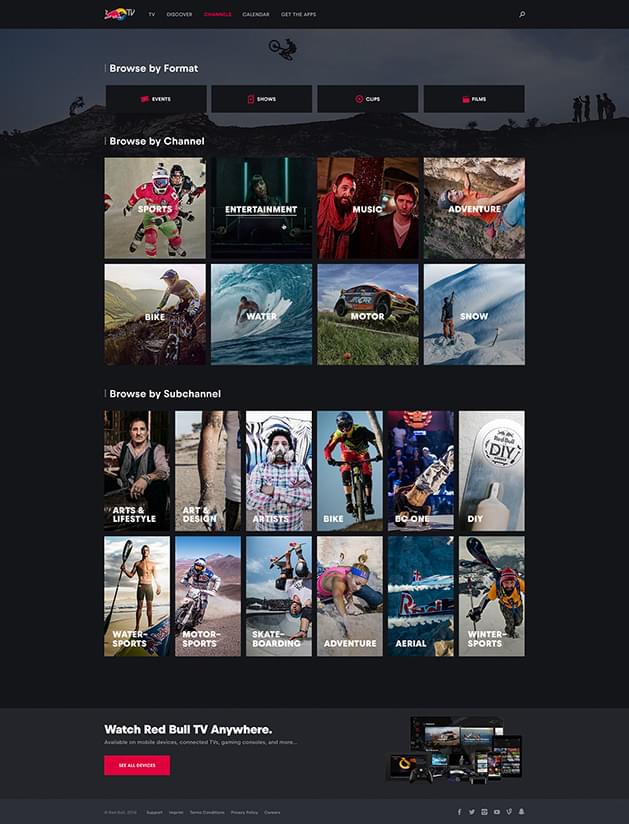 From the small screen to the big, Red Bull TV is designed to work and play everywhere.